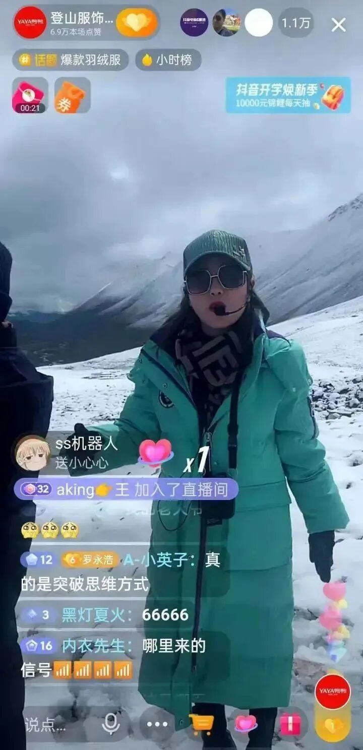 这个时候,你在哪儿说比你怎么说更重要。比如鸭鸭羽绒服,为了证明他的羽绒服抗风保暖,把自己的直播间,搬到了西藏海拔5000米的雪山上。