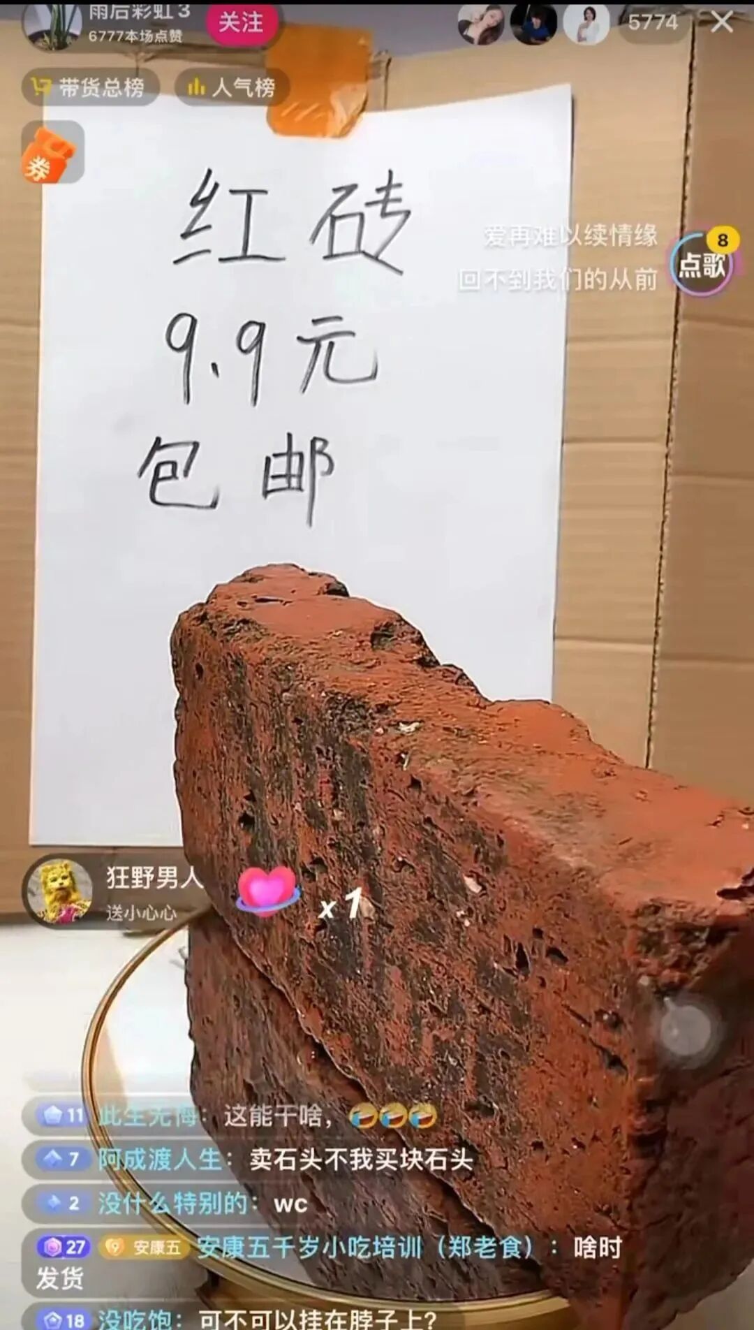 就是一块砖在展示台上转,评论区的讨论氛围很热闹,有几千人同时在线观看。