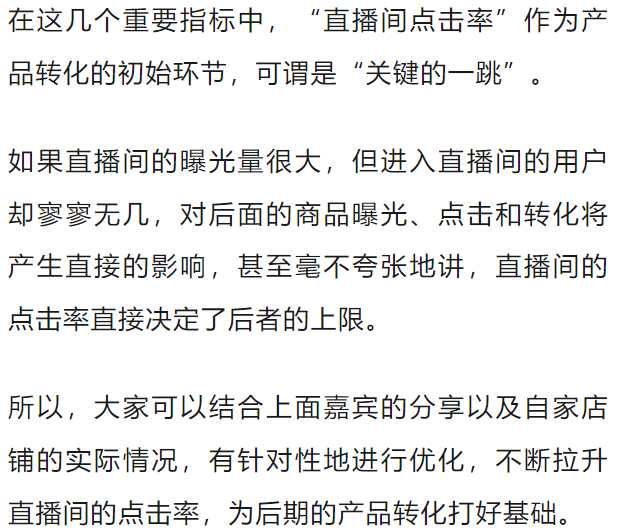 做好直播间的重点和难点,是点击进入率和用户停留时长,当然,也离不开主播的现场发挥。