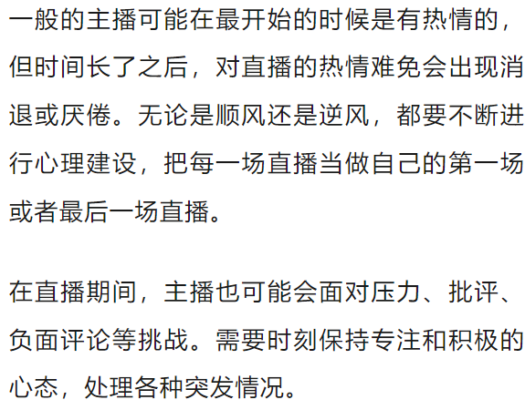 主播需要同时在心理和生理上保持好最佳状态,去面对直播间用户。