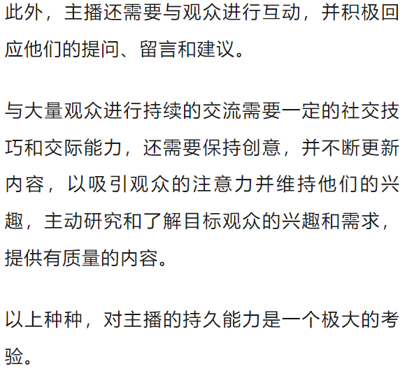 如果主播在直播的时候没有和用户聊天的那种氛围,是很难留住用户的。纯讲解式的直播,通常在线人数不会特别高,除非产品有足够强的吸引力