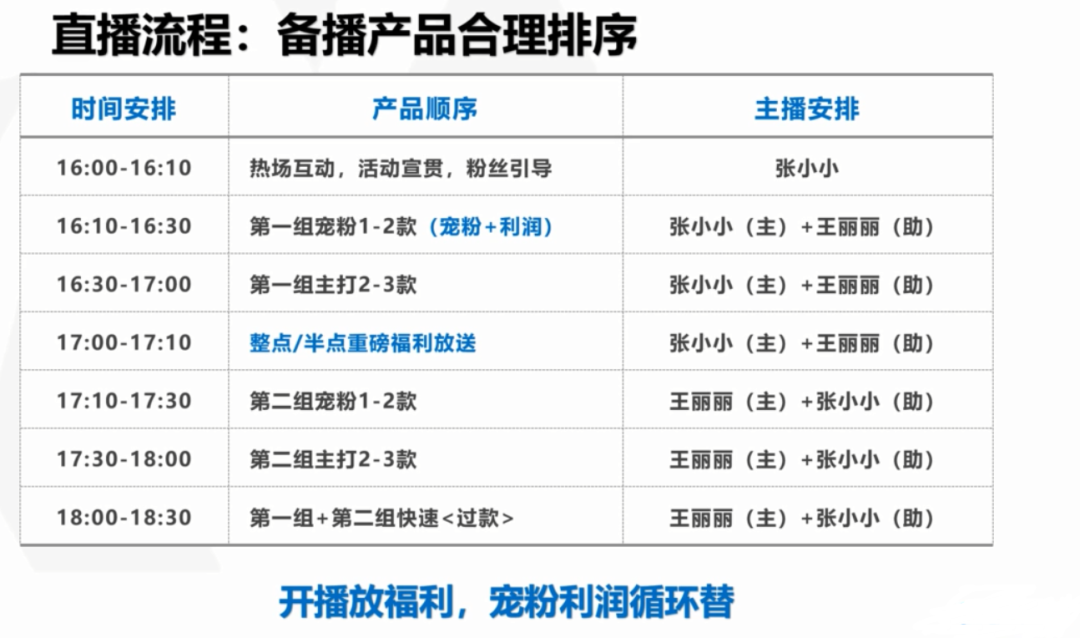 宠粉+利润、宠粉+利润......这样一个产品顺序去直播。