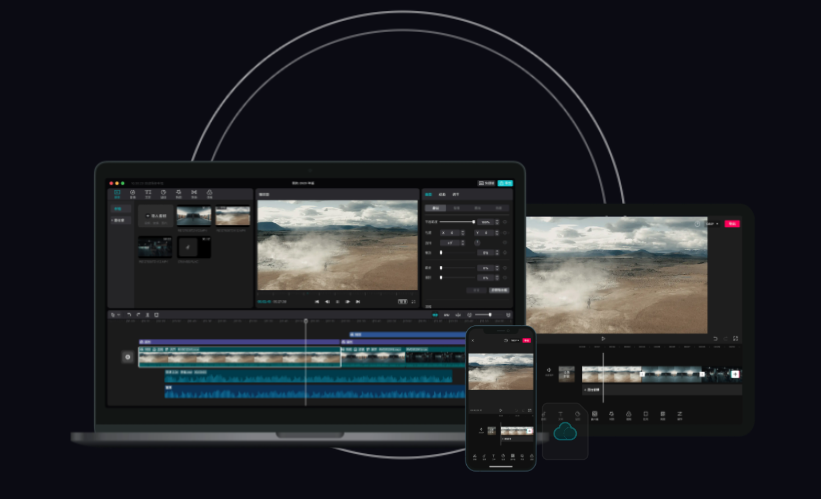 剪映:上面提到过,手机、平板、PC三端草稿互通,走到哪里,剪到哪里,创作从此不受限