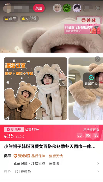 例如,现在是冬天,用户对帽子、围巾、手套等需求大,就可以选择季节关联性较强的商品在直播间售卖。