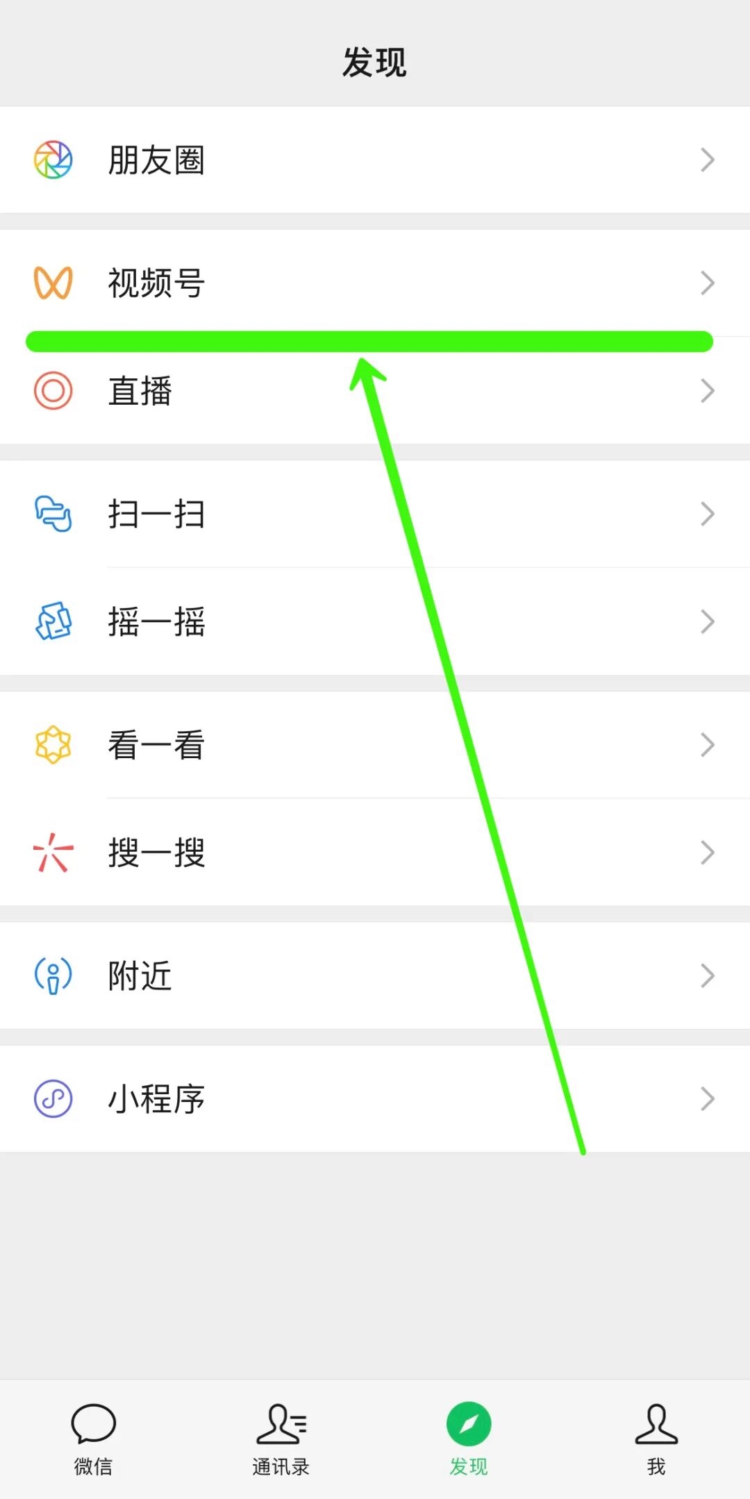 ①一级页面的大入口,同公众号;虽然折叠,但视频号不一样没列表?