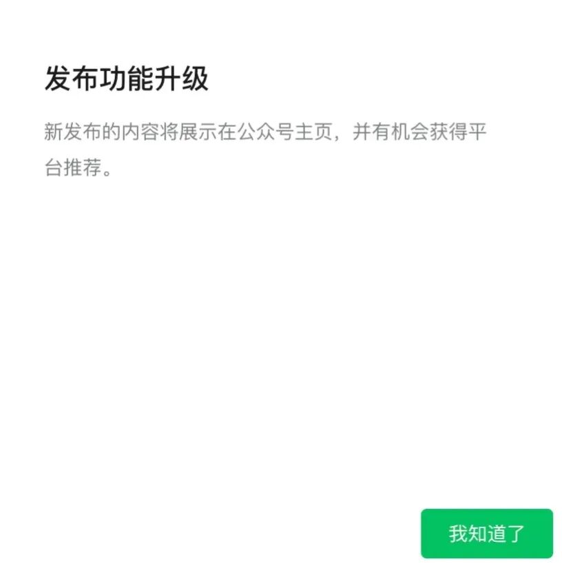 1、平台自己说的:微信公众号发布功能升级,明确表示有推荐流量。小绿书作为公众号的功能补充,以及公域流量释放窗口。