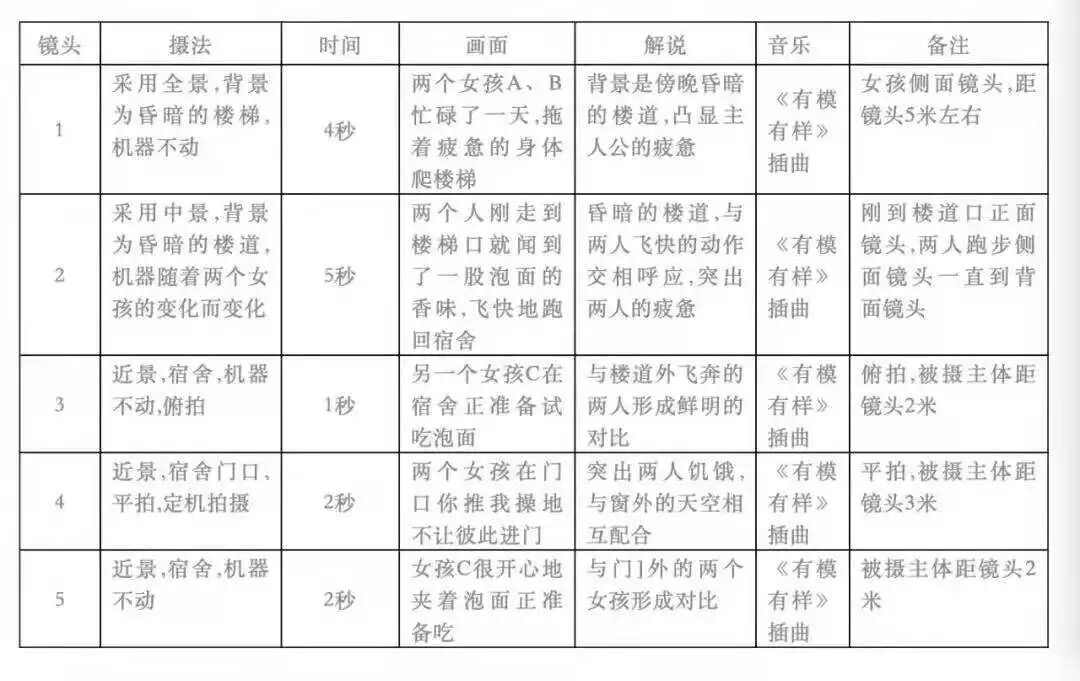 视频脚本里,最通用的部分,就是镜头号、时间、画面和文案,剩下的部分,可以结合你要录制的视频种类,来具体确定是否使用。