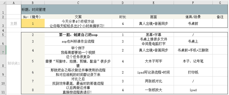 但我们素人,尤其是一开始新手期的时候,视频脚本不需要这么复杂,把主要内容凸显出来就可以了。