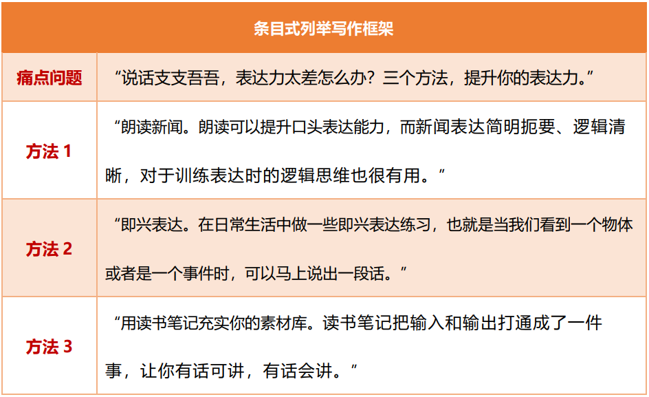 讲方法、分享干货用条目列举式模板。