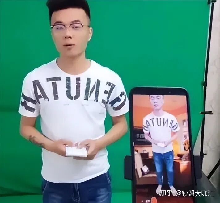 随后诞生的绿幕技术,改进了录播缺陷,不需要专业设备,只要安装绿幕直播软件,同时准备视频素材作为背景,对着绿幕播放,真人偶尔出镜,看起来和真的一样。