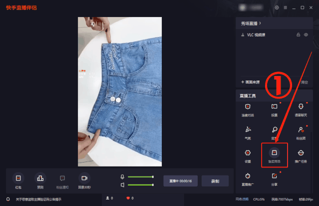 开播后,点击“售卖商品”