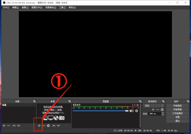 打开OBS软件