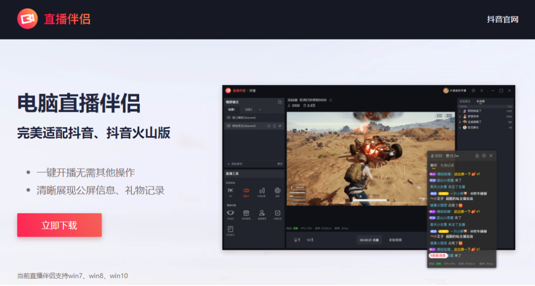 打开抖音官网,下载并安装“直播伴侣”