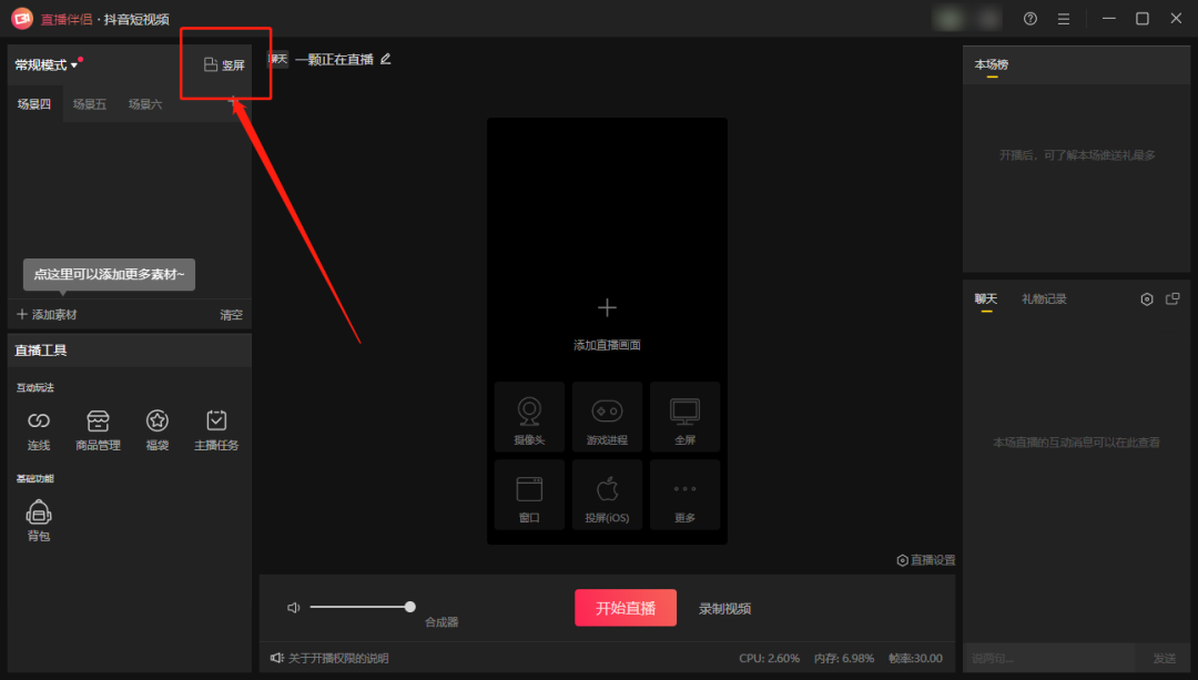 进入“直播伴侣”主界面