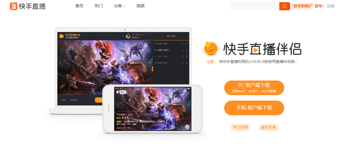 打开“快手直播”官网,下载并安装“快手直播伴侣”