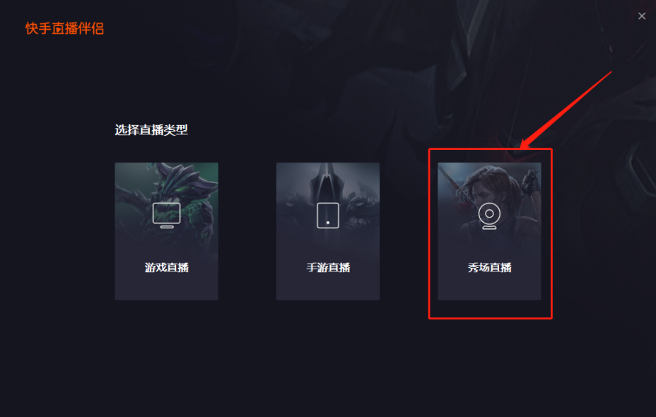 打开“快手直播伴侣”,选择“秀场直播”