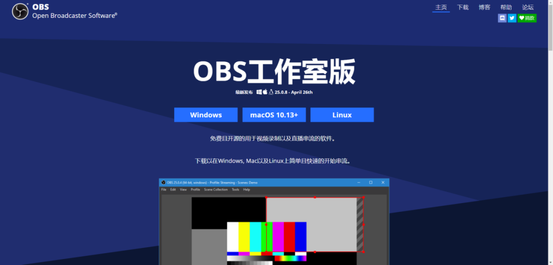 打开OBS官网,下载并安装“OBS”软件