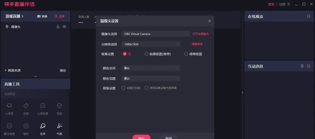 点击“确定”,开始直播