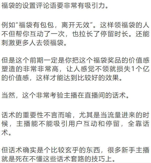 正确的留人方法是:一上来就直接展示福利+产品价值,要让粉丝感受到在你直播间能够获得真正的福利,让粉丝感受到再你的直播间省钱甚至是赚钱,价值不到价格不到!
