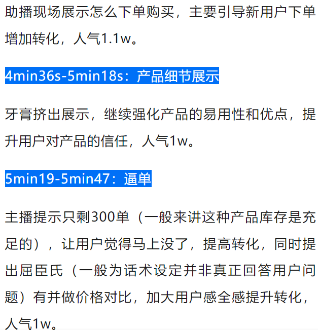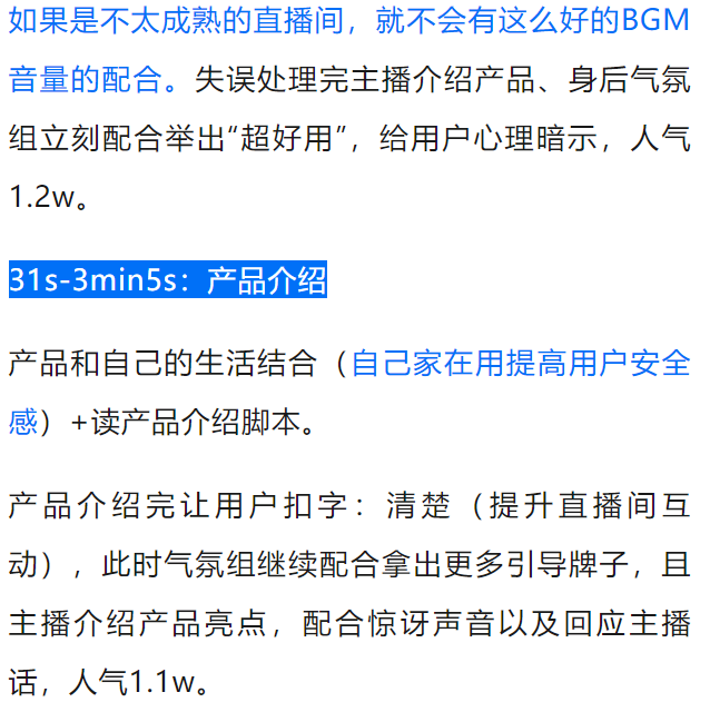 ④弄清楚直播间脚本的人设部分、产品介绍部分、逼单部分的内容。