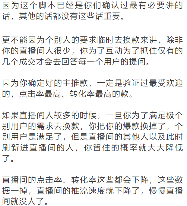 就是让我们的直播间在赛马机制下,厮杀一段时间,获得一个稳定的权重,进而获得稳定的流量和销量。