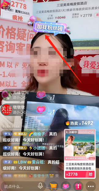 话术1:给主播点点关注,在我头像的旁边有一个加入粉丝团,宝宝看见了吗?加入一下我的粉丝团。
