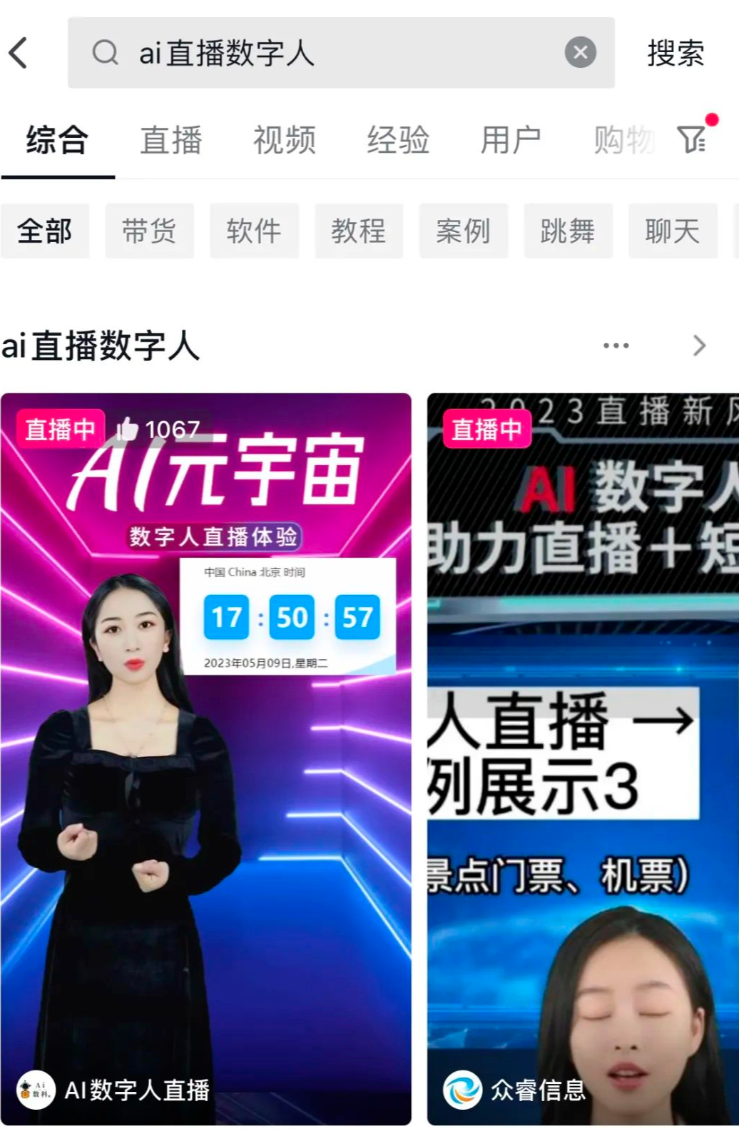 在抖快、小红书、视频号等内容平台上搜索“AI直播数字人”,可以看到不少商家用直播的形式展示自己的产品与服务,还有大量关于售卖数字人以及提供相关运营服务的账号。