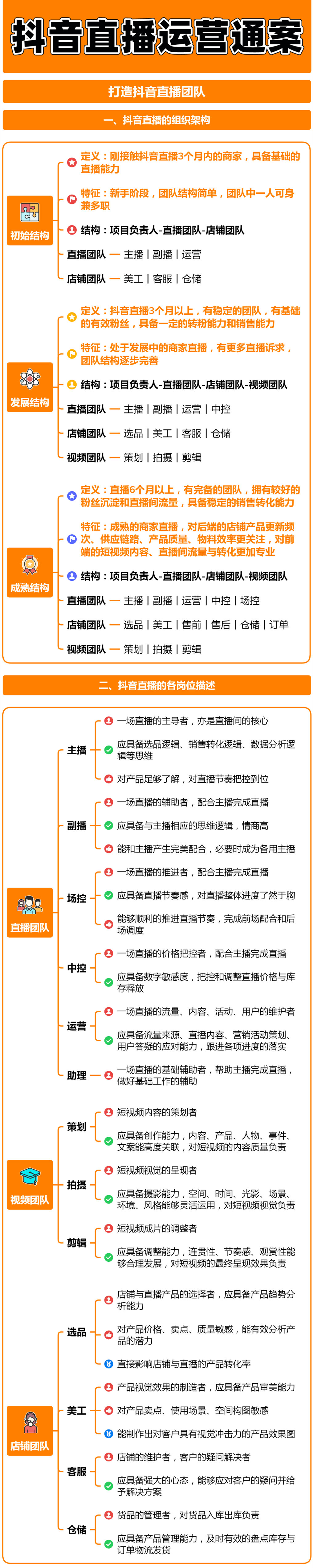 本文从抖音直播团队打造、抖音直播核心流程、抖音直播话术逻辑及直播复盘等3个方面全面概括抖音直播运营通案,希望对小伙伴们有帮助。
