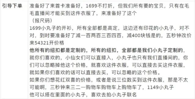 “今天只限在我的直播间有这个价格,站外都没有这个价格。”