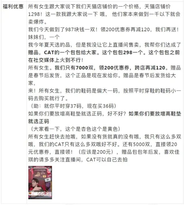 讲述过程中会将重点放置在福利、数量部分,不断提醒用户限时销量,营造出一种「不容错过」的氛围