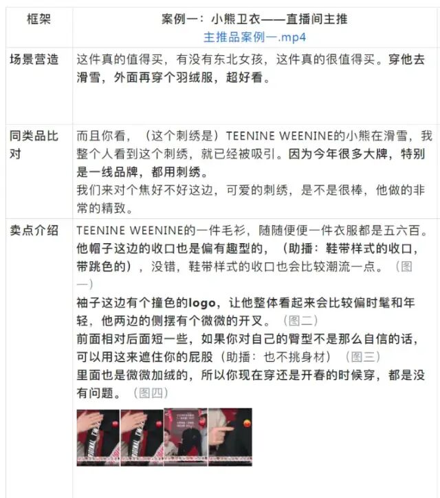 品质较好、客单价相对于自家其它产品较高,讲述时会利用产品、品牌背书介绍产品,内容侧重产品的品质,并反复提及