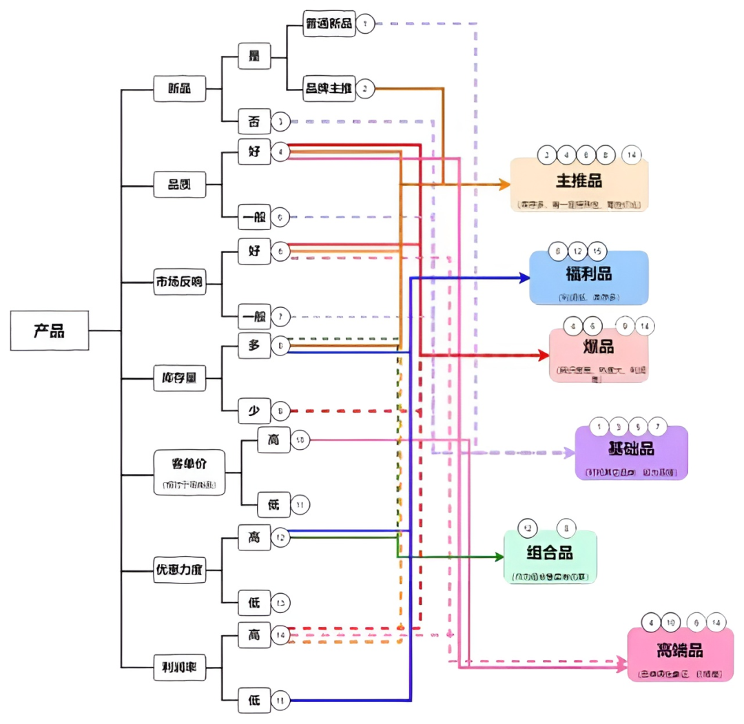 方法一:产品关系图(实线必备要素,虚线非必备要素)
