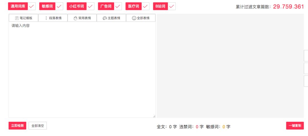 脚本写好之后呢,放到这里面看看有没有违禁词,确保文案不违规,再去录视频。