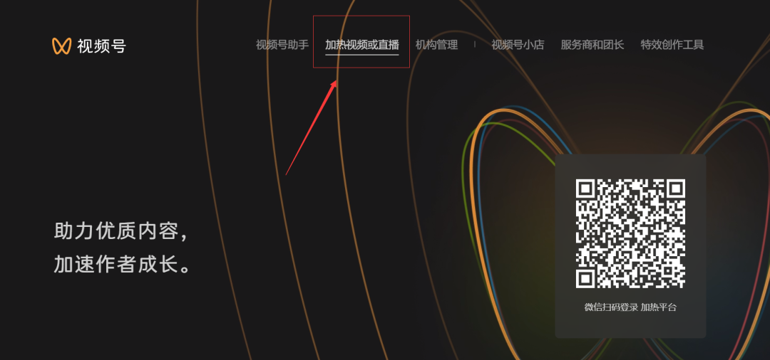 2、选择加热视频号或直播,扫码登录后台,进入后台操作界面。