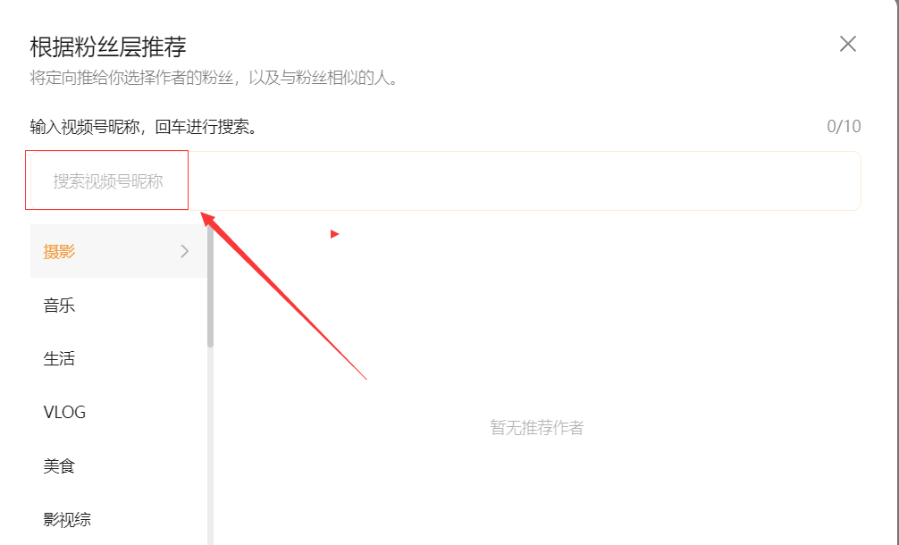 根据粉丝层推荐:建议选择相似作者的粉丝。找到优秀的同行,然后把视频内容推送给同行的粉丝,提升转化效果。