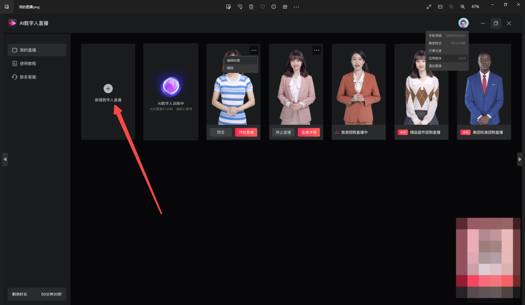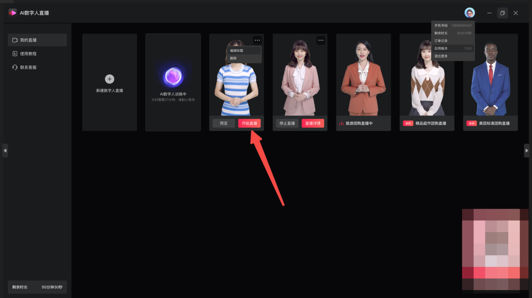 3.1软件设置——在AI数字人直播软件中:选择数字人,点击开始直播