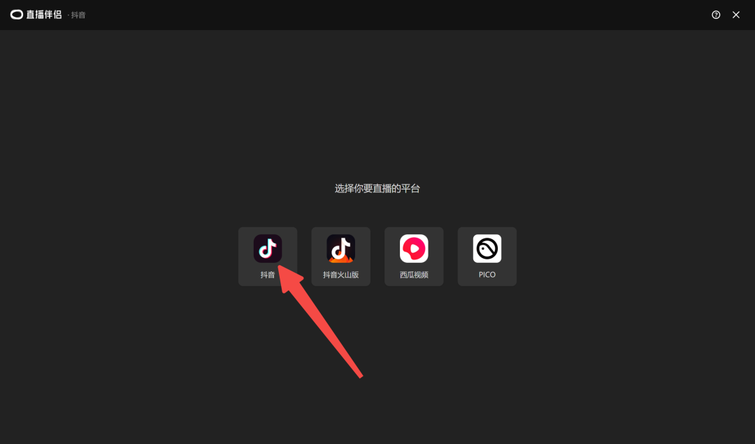 双击打开直播伴侣(点击下载),选择抖音等平台,登录相应的账号