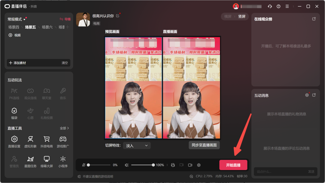 3.3 点击“开始直播”,即可开播