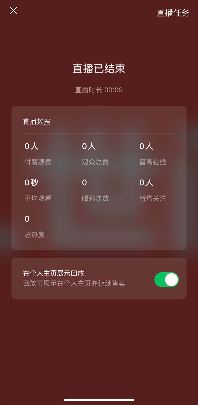 结束直播后,在结束页面下方,点亮保存直播回放按钮即可