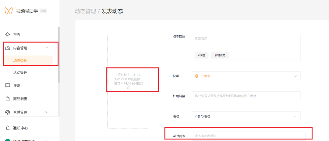 3. 在左侧边栏找到“内容管理”-“动态管理” 按钮进入发表动态页面