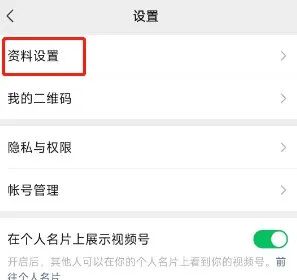 ● 方式二:进入视频号主页 —> 点击主页右上角三个点处【...】进入设置页 —> 找到”在个人名片上展示视频号”,点亮按钮开启