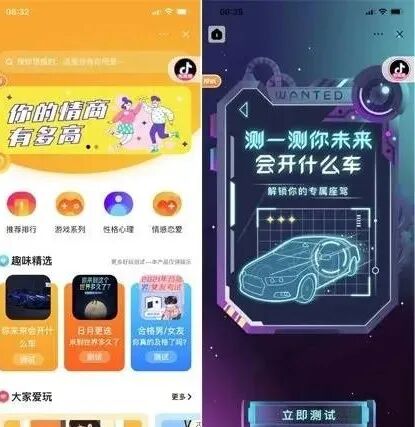 在抖音中搜索“趣玩趣测”,进入小程序主页,选择自己喜欢的测试试玩并录制视频,然后回到测试也,点击右上角的发抖音发布即可。