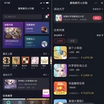 「 游戏发行人计划」是抖音官方游戏内容营销聚合平台。广告主通过「 游戏发行人计划」发布游戏推广任务,抖音创作者接单创作视频,增加抖音平台游戏内容量,提高游戏用户规模和活跃。平台加码赋能小游戏开发者,助力精品小游戏发展;