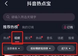 选择视频榜,点击选中低粉爆款,时间选择近7天,然后选择全部垂类,在里面选择你所在的行业或者赛道,这样就可以找到你所在的赛道里面,近七天涨粉涨的最猛的视频了,然后去找适合自己的内容去翻拍。