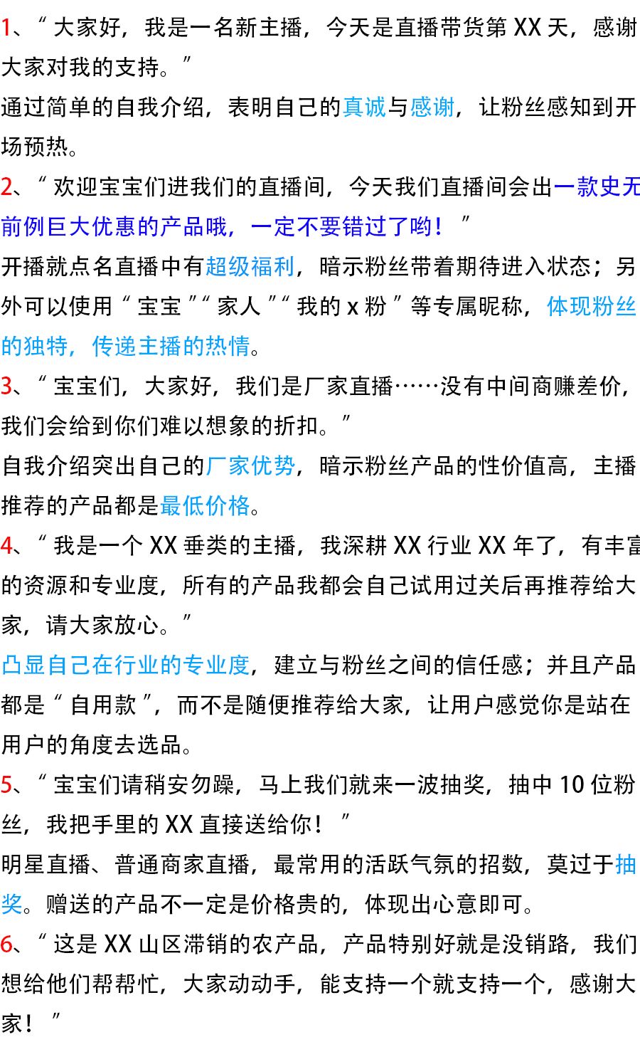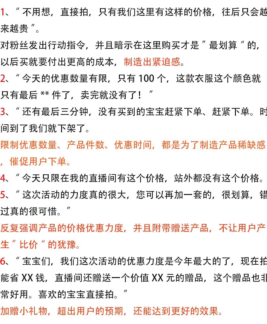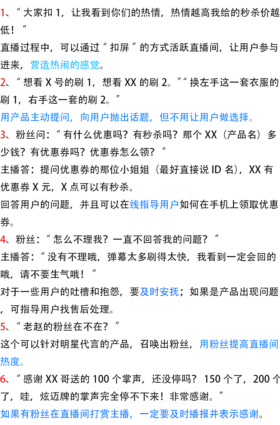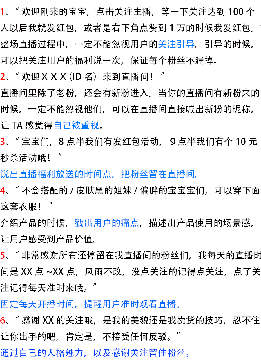 其实只是我们在直播室面对他们,却不曾知道原来他们从开播到下播,他们都有自己的一套直播话术,并且屡试不爽。并且已经在不断直播中优化成为了自己的话术。