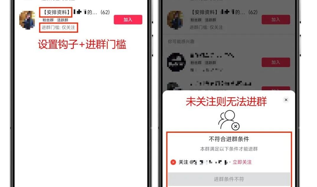 我们还可以采用“钩子吸引+设置群聊门槛”的方式,来吸引用户关注抖音账号。