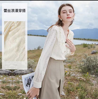 再举一个例子,假设你是卖女装打底衫的,领口有蕾丝边。普通的主播可能会说“我们家的衣服很好,给大家展示一下蕾丝边”。