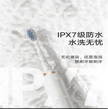 来,宝宝们,我告诉你们,我们这个电动牙刷它的防水性能特别的好,市场上500米以上的电动牙刷一般是做到六级防水,一千米以上的电动牙刷一般是做到七级防水,能做到八级防水的电动牙刷真的很少。