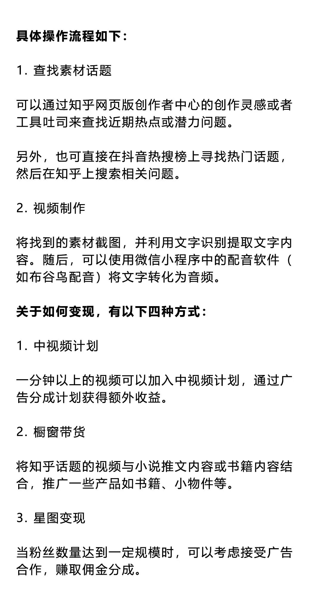 这项玩法非常简单,直接引用知乎上受欢迎的回答,将原本以图文形式呈现的内容制作成视频并发布到抖音上,从而获取流量并实现变现。