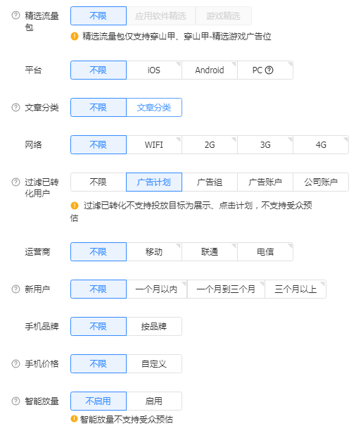 可以看出,无论是投放目的还是筛选条件,feed要复杂得多,也精准得多。